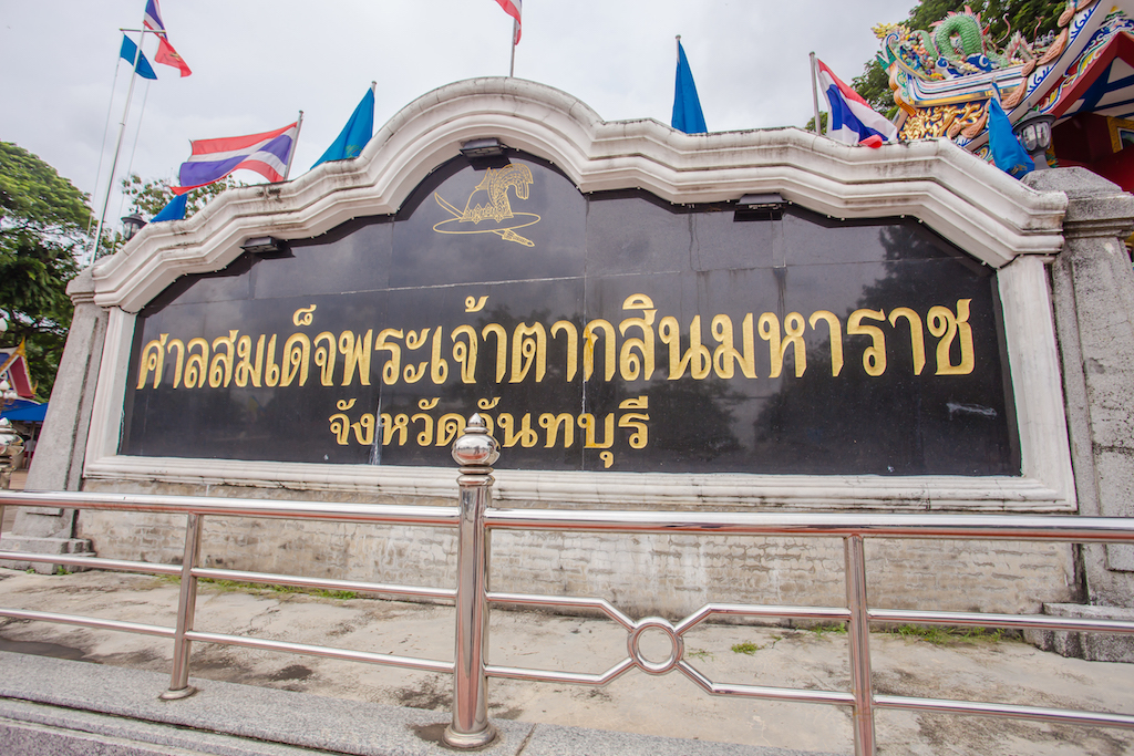 ศาลสมเด็จพระเจ้าตากสินฯ เป็นสถานที่สำคัญอีกแห่งหนึ่งของเมืองจันท์ บ่งบอกถึงความผูกพันของชาวเมืองนี้ที่มีต่อพระเจ้าตาก โดยมีคำกล่าวว่า ถ้าไม่ได้มาสักการะพระเจ้าตาก ก็ถือว่ายังมาไม่ถึงเมืองจันท์ศาลสมเด็จพระเจ้าตากสินฯ เป็นศาลทรงเก้าเหลี่ยม หลังคาเป็นรูปพระมาลา เป็นที่ประดิษฐานพระบรมรูปสมเด็จพระเจ้าตากสินมหาราช ซึ่งหล่อด้วยทองเหลืองรมดำผนังภายในเขียนลายพุ่มข้าวบิณฑ์ไว้อย่างสวยงาม ชาวจันทบุรีถือว่า สมเด็จพระเจ้าตากสินมหาราชทรงมีพระมหากรุณาธิคุณทำให้จันทบุรีเป็นที่รู้จัก และเป็นส่วนหนึ่งของประวัติศาสตร์การกอบกู้เอกราชคราวเสียกรุงครั้งที่ 2 ในฐานะเป็นฐานที่มั่นของสมเด็จพระเจ้าตากสินฯ ในระหว่างการรวบรวมพลรวมถึงเสบียงอาหาร และสถาปนาอำนาจขึ้นใหม่ กล่าวคือ ในปี พ.ศ. 2310 ขณะที่พม่าล้อมกรุงศรีอยุธยาอยู่ สมเด็จพระเจ้าตากสินหรือพระยาวชิรปราการ (สิน) ในขณะนั้น เล็งเห็นว่ากรุงศรีอยุธยาต้องแตกพ่ายและตกเป็นของพม่าแน่นอน จึงรวบรวมพลทหารไทย จีน ได้ 500 คน ตีฝ่าวงล้อมพม่าทางทิศตะวันออก โดยต่อสู้กับข้าศึกในระหว่างทางและได้ชัยชนะ สามารถรวบรวมไพร่พลได้มากขึ้น พระยาวชิรปราการเห็นว่าจันทบุรีมีชัยภูมิที่เหมาะสมในทางยุทธศาสตร์ เป็นหัวเมืองชายทะเลที่ปลอดจากสงคราม ทั้งมีความอุดมสมบูรณ์ด้านพืชพันธัญญาหาร รวมทั้งยังเป็นชุมชนชาวจีนแต้จิ๋ว พระยาวชิรปราการมีเชื้อสายจีนแต้จิ๋วและเคยเป็นพ่อค้ามาก่อน จึงมุ่งหวังว่าจะได้รับความช่วยเหลือจากชาวจีนเหล่านี้ ดังนั้นจึงใช้เมืองจันท์เห็นที่มั่น และรวบรวมหัวเทืองชายฝั่งทะเลตะวันออกได้ทั้งหมด สามารถต่อเรือรบได้ 100 ลำ มีผู้สวามิภักดิ์มากขึ้นถึง 5,000 คน แล้วกลับไปตีทัพพม่า ขับไล่ออกไปจากอยุธยาได้สำเร็จนับเป็นการกอบกู้เอกราชของชาติกลับคืนมาได้อีกครั้ง