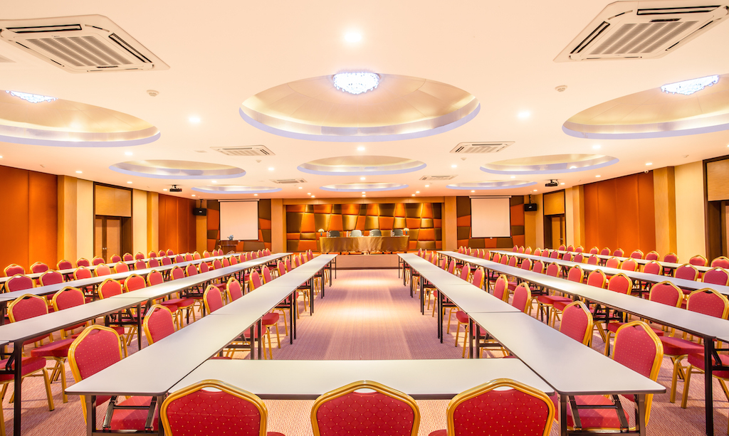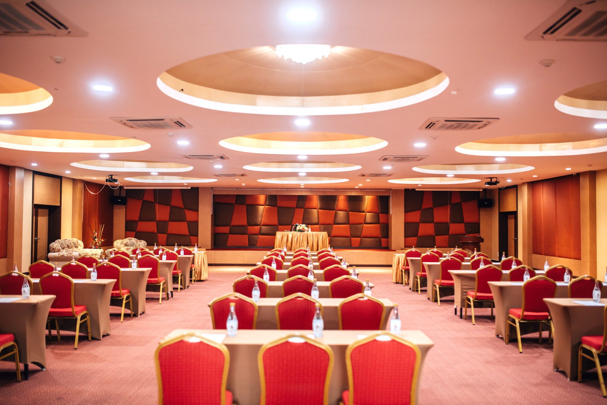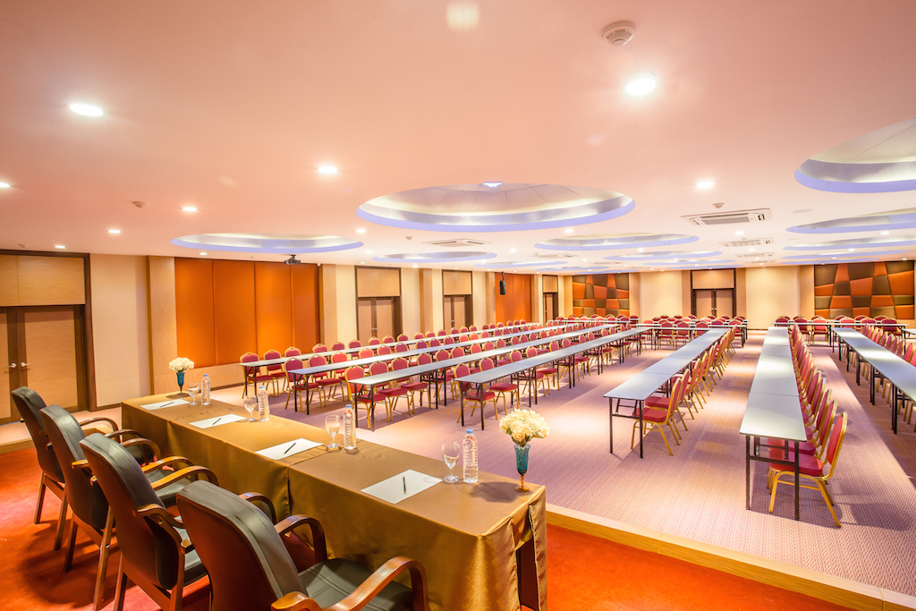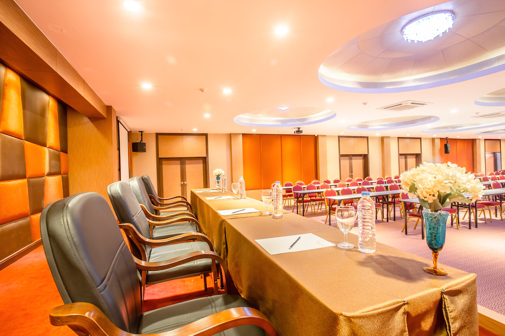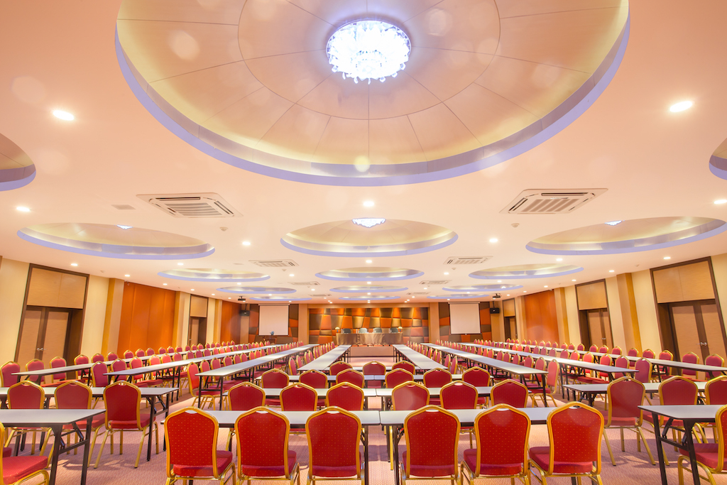 Grand Ballroom can accommodate up to 450 delegates in a meeting setting, 350 people for a cocktail reception, or 250 people for a sit-down dinner, with modern audio-visual equipment. Food and drink will be allocated according to the organizers’ requests. Facilities in the Grand Ballroom: - Stage - Projector - Sound system - Wireless Microphone - Microphone Stand - Table Microphones - Flip charts.