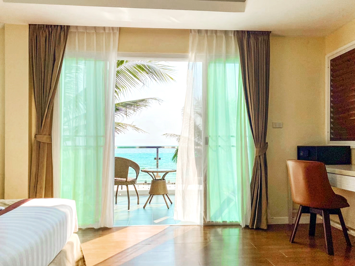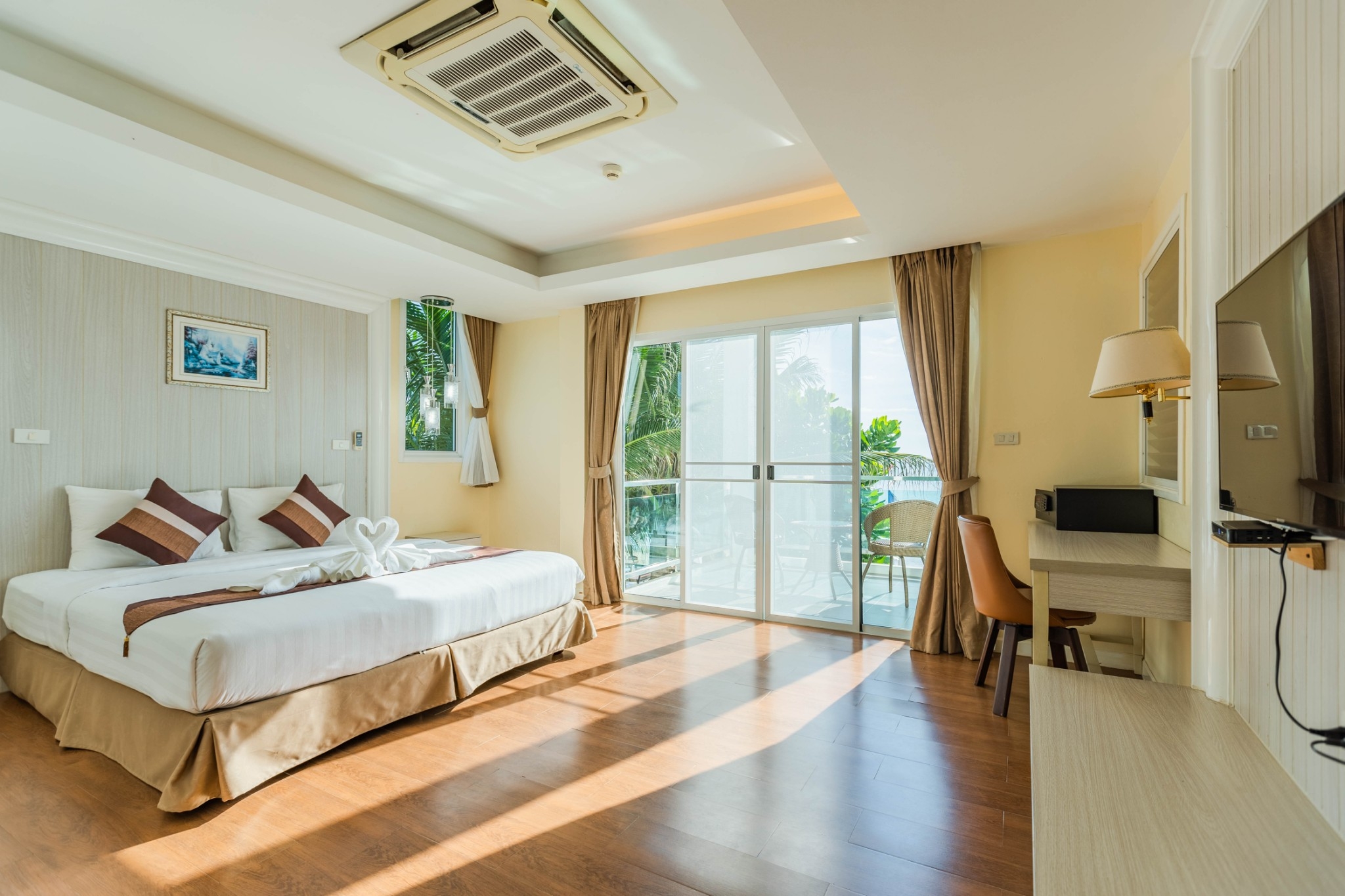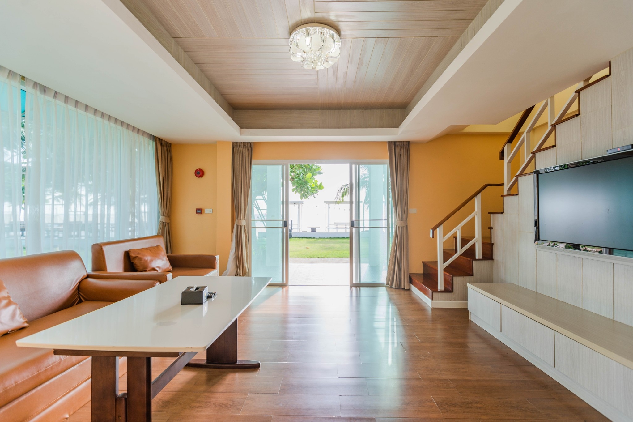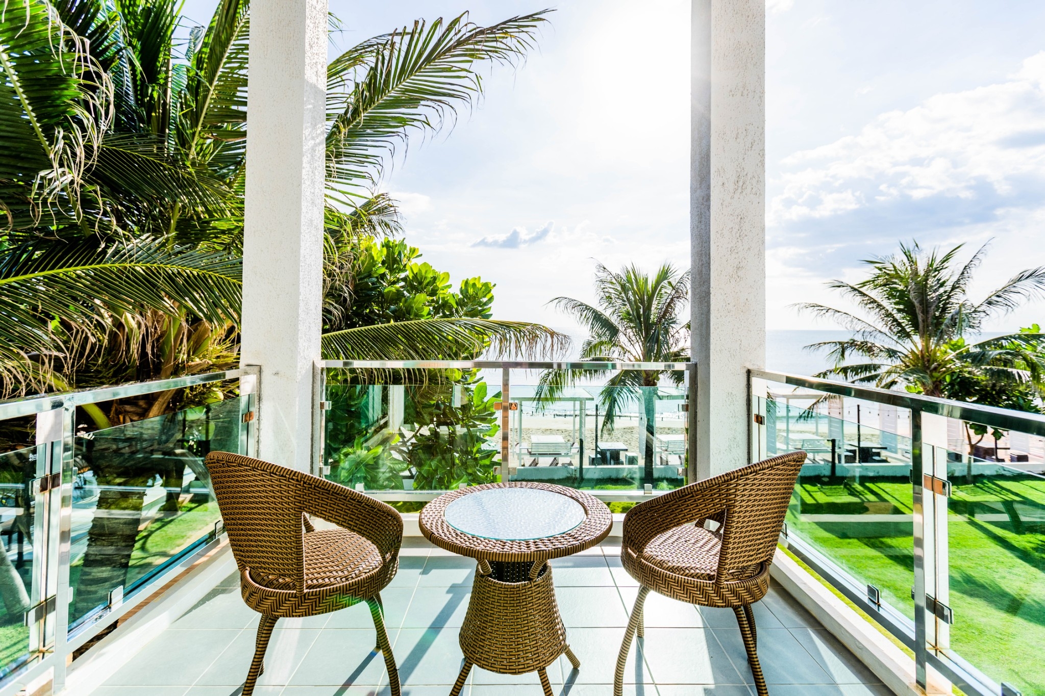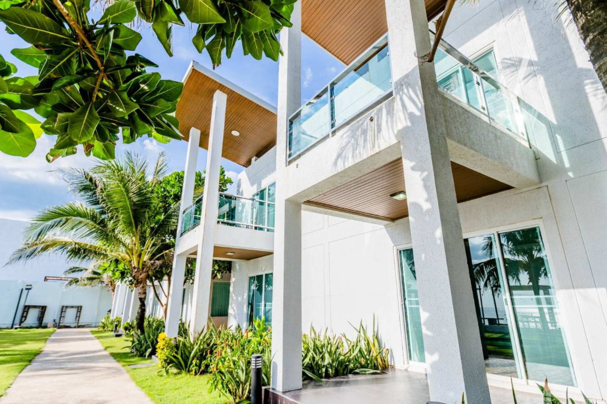 The Beachfront Villas have an area of 75 square meters. The two-storey villas include one double bedroom, living room and two bathrooms. Enjoy sweeping views of the sea for your romantic seaside atmosphere.