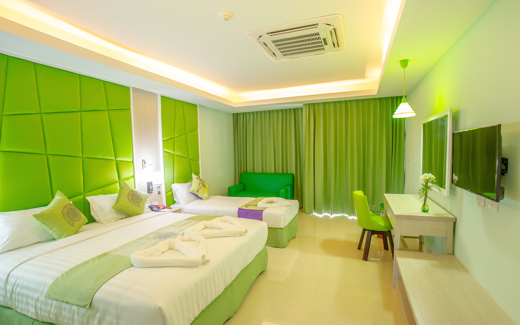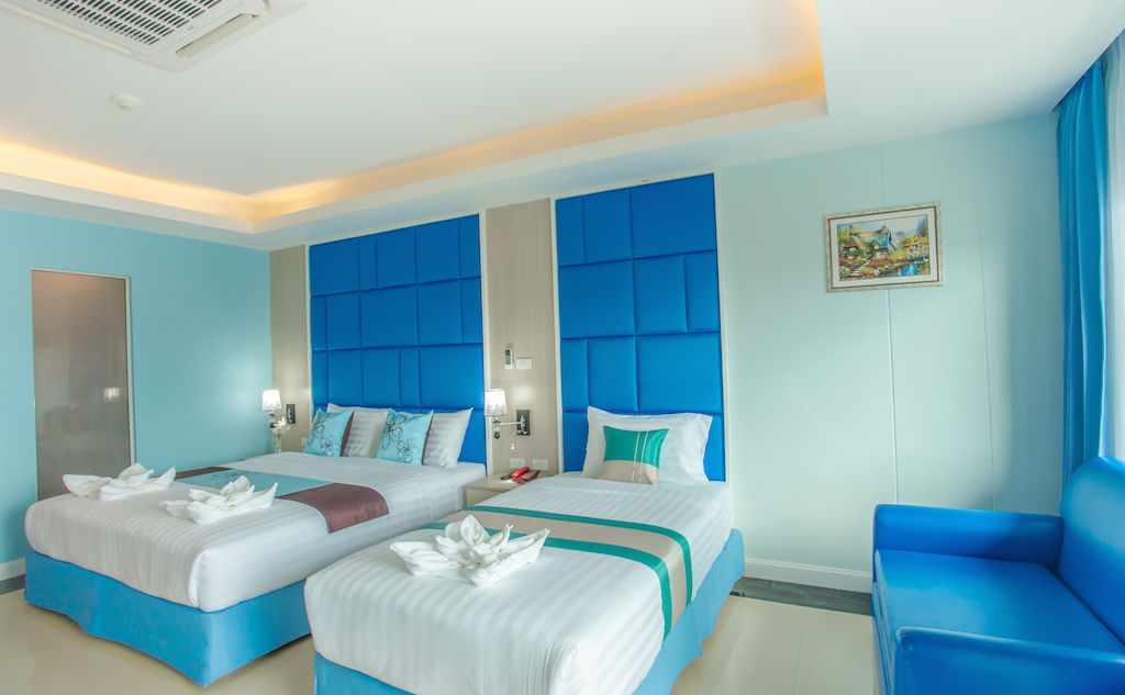 The Deluxe Rooms have an area of 38 square meters. Triple Style Rooms can accommodate up to three persons each room with one Double Bed and one Single Bed decorated with green or blue for your preferable choices. All rooms are overlooking the sea and swimming pool.